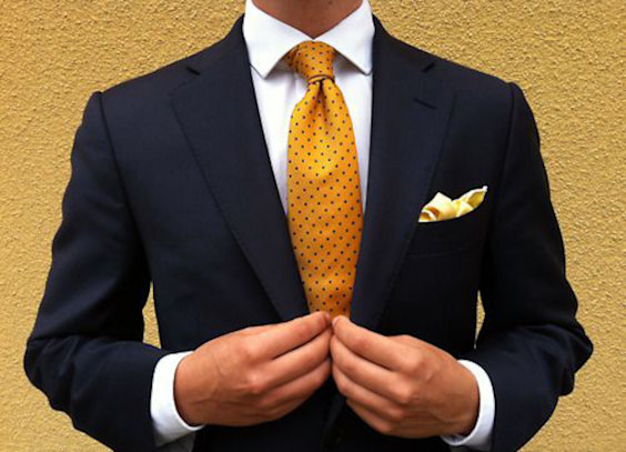 Em doses homeopáticas (ou seja nos acessórios) o amarelo é capaz de dar um ar jovem e moderno ao traje, mesmo quando se trata de algo conservador como a alfaiataria.