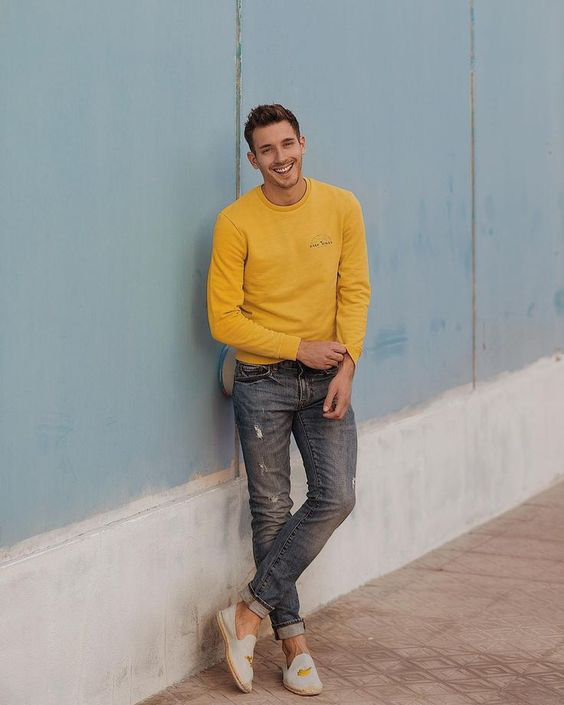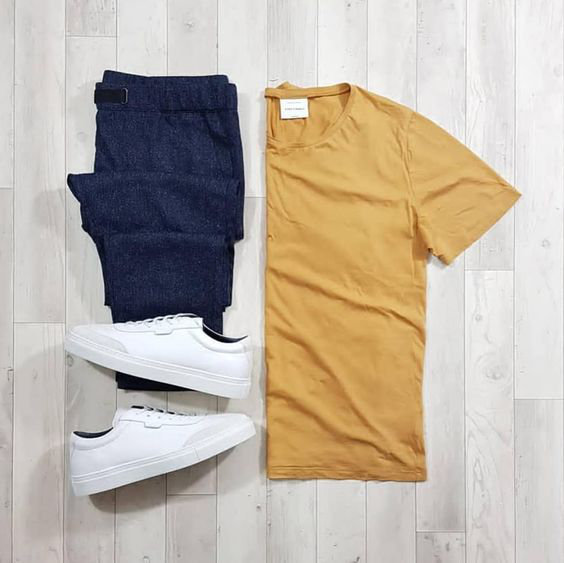 Se a ideia é apenas aderir a uma cor que está em alta, ou pelo menos está tentando se destacar, o bom e velho look “cowboy do asfalto” nunca falha. Camiseta amarela, jeans estonado e tênis básicos são uma opção para o homem urbano.