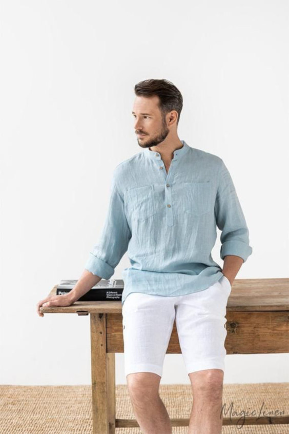 Dificilmente um item de linho vai combinar com um casaco pesado ou roupas muito escuras. Dias claros e quentes são a boa hora para usar suas peças de linho, embora nada te impeça de usá-lo a noite também, contudo, quando pareado com algo muito invernal o tecido parece deslocado e o look costuma perder seu equilíbrio.
