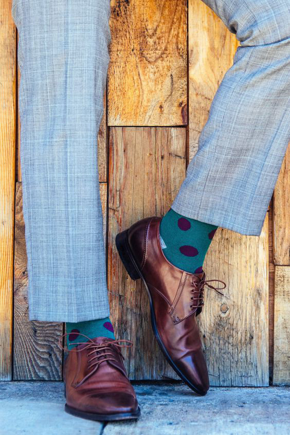Um recurso manjado, mas muito útil para quem quer deixar o combo de escritório com um toque irreverente. A meia de poá não precisa ser extravagante como essa da foto, eu mesmo tenho uma preta com pontos cinza discretos que eu gosto muito, no look casual, entretanto, é possível se soltar mais e usar a criatividade.