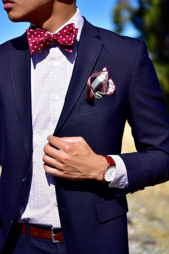 A gravata borboleta no traje do noivo ou dos padrinhos (ou ambos, por que não?) dá um ar mais leve e alegre, sem parecer deslocada. O cara da foto ainda resolveu brincar com o poá na meia, além de escolher sapatos em um tom um pouco mais claro do que o usual.