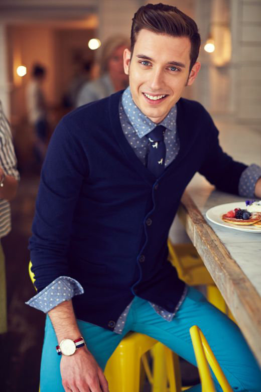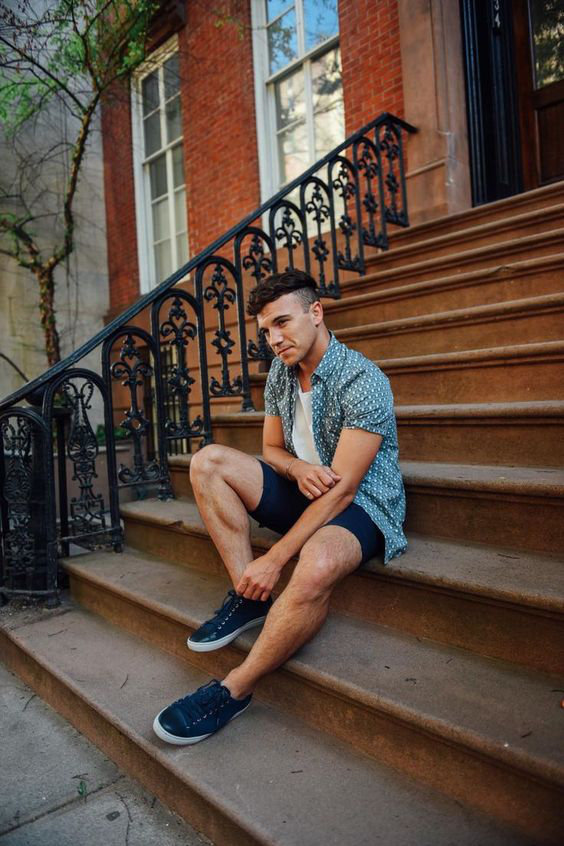 Se você aderiu às bermudas com micro estampa náutica não está vendo nada de novo aqui. Apenas tome cuidado para não concentrar muita atenção abaixo da linha da cintura. No caso acima o xadrez de cor contrastante garantiu um peso maior na peça de cima, mesmo assim foi uma escolha arriscada, eu optaria por uma camisa de cor forte, mas lisa, e uma bermuda de cor neutra, como essa.