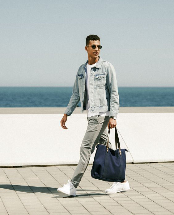 O tipo de bolsa masculina que mais sofre preconceito entre os homens por ser carregada pela alça, como uma sacola, mas que eu acho bem bacana. Existem modelos que trazem uma tira que pode ser afixada, permitindo levar a bolsa a tiracolo, essa, geralmente, é mais aceita.