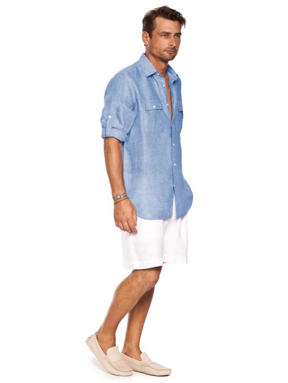 A camisa de linho é uma maravilhosa opção para o calor, sobretudo em momentos de lazer, onde combina com bermudas, calças de algodão e jeans confortáveis, além dos boat shoes e tênis brancos de lona ou couro.