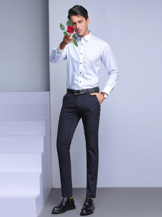 5 – Calças de alfaiataria masculinas com camisa de mangas curtas