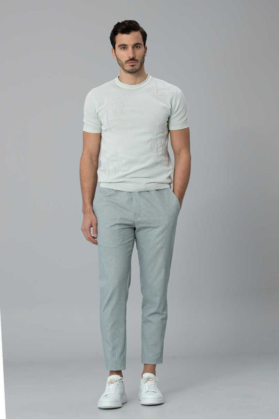 Calças de alfaiataria masculinas usadas como peça casual são uma tendência que parece ter vindo para ficar, o homem descobriu que a calça social, como é popularmente conhecida, fica muito estilosa quando combinada com outras peças que não sejam o clássico terno e gravata.