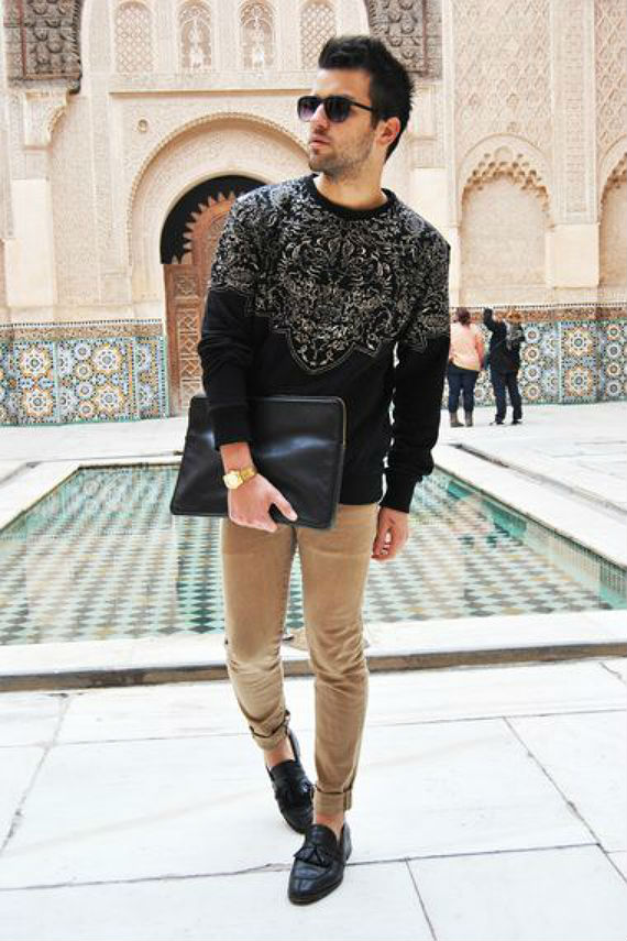Casacos geralmente dão um ar austero e elegante, mas é possível adicionar uma blusa de moletom básica e deixar o visual ligeiramente descontraído. Se ainda assim você quiser impor um tom mais sério não abra mão da camisa por baixo do suéter, o mesmo vale para o calçado, um sapato social vai manter o look alinhado (arriscando até usar no trabalho), um tênis vai deixar tudo mais relax e ideal para passeio.