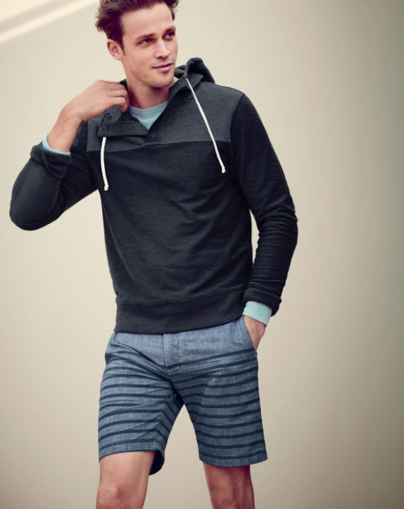 O encontro entre duas peças feitas para condições climáticas diferentes pode se sair bem, pois ambas são completamente casuais e jovens, criando uma indumentária ideal para meia estação, ou para aqueles dias em que o tempo não se decide. Esquentou? Amarre o moletom na cintura! Esfriou? Vista a blusa novamente, não tem escapatória. Essa combinação é ideal para quem pratica algum esporte urbano que necessita de liberdade de movimentos, como o skate por exemplo.