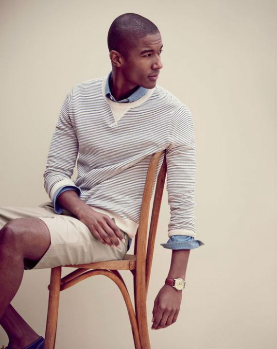 Os adeptos do visual navy, ou seja, uma composição que usa peças com inspiração ou elementos que lembram o universo náutico, pode lançar mão dos moletons com listras marinho combinados com calças de linho brancas, marinho ou até vinho. Nos pés ficam bem os tradicionais docksides (guarde as sandálias para a praia o beira da piscina), nos braços pulseiras com âncoras, cordas e cabos náuticos. Essa mistura merece atenção, se ficar com muita cara de litoral não deve ser usada na cidade, vai parecer que você errou o caminho do mar.