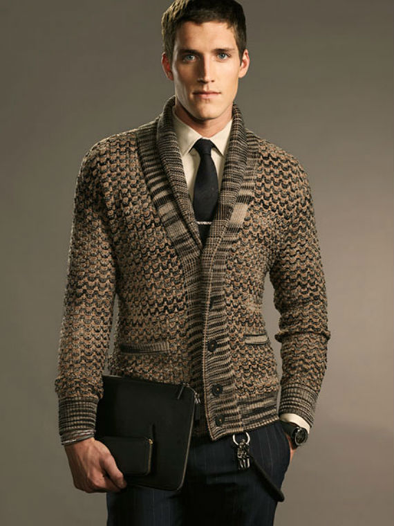 Que o cardigã é uma peça coringa nós já sabemos, mas a tendência nos últimos tempos é usá-lo por baixo do paletó, neste exemplo vemos que excluir um e incluir outro é uma opção plenamente satisfatória, desde que, como já dissemos, o ambiente que você frequenta permita essa troca.