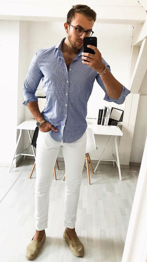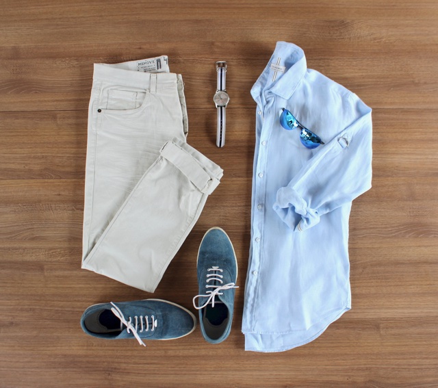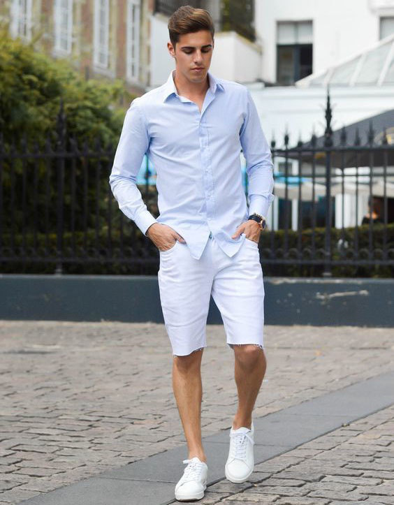 Ainda acho a camisa a escolha mais estilosa para a data, ela pode ser combinada com uma bermuda de algodão, uma chino ou até jeans. Os tons de azul sempre funcionam muito bem quando combinados com outras peças brancas, porém…
