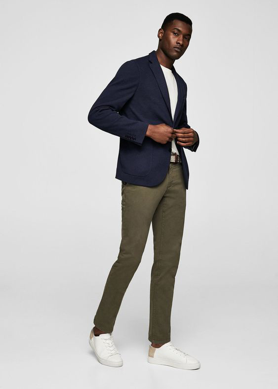 Lembra daquela color chino que você comprou em 2014? SE você acha que ela chama muita atenção, experimente usá-la com um blazer de sarja marinho, a cor fria e escura torna o look mais equilibrado. Para não deixar o dorso muito apagado, invista em uma camisa ou camiseta branca para iluminá-lo.