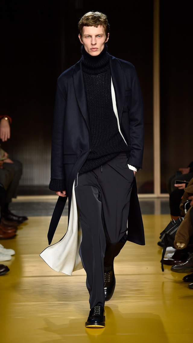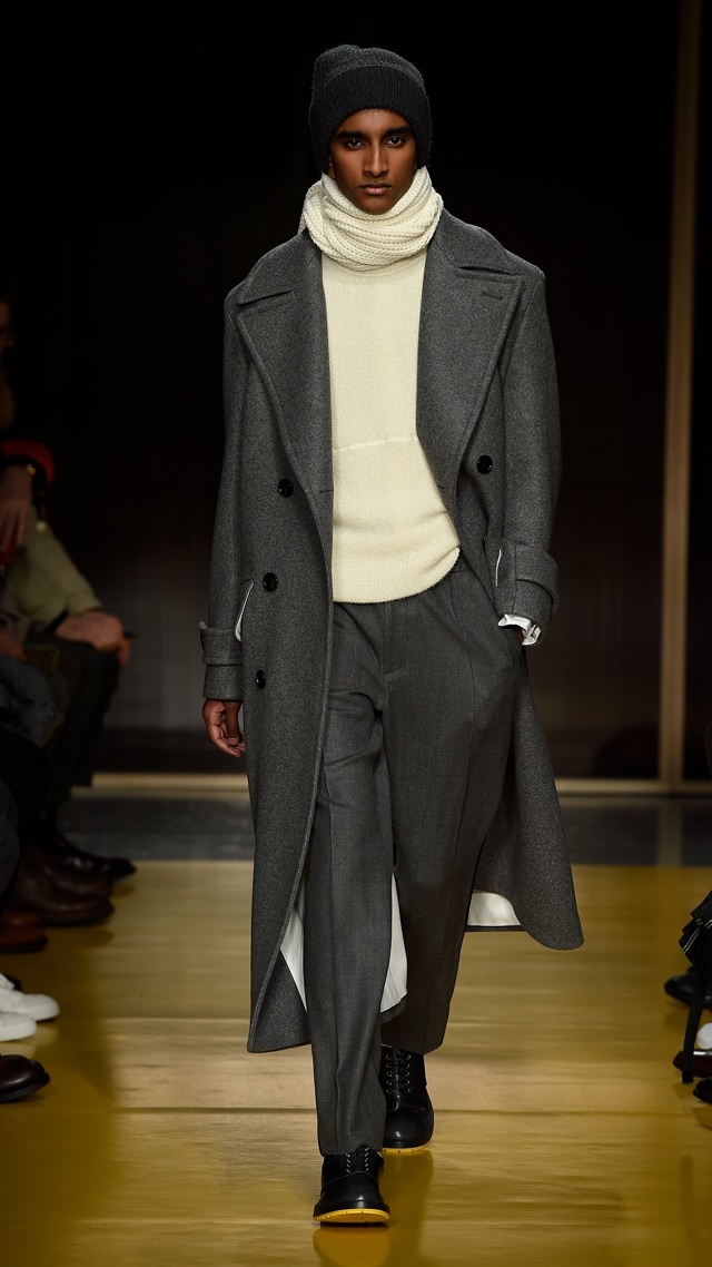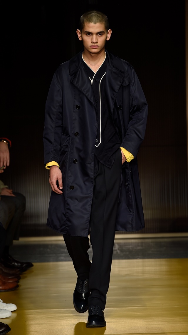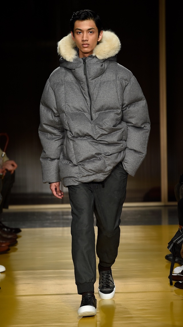 Os casacos e jaquetas não são apenas largos, mas também volumosos em alguns casos, deixando bem definida a pegada esportiva da coleção, assim como as listras, os cordões nas calças e o nylon servem para o mesmo fim, mas felizmente contam com alfaiataria moderna e elegante para equilibrar.