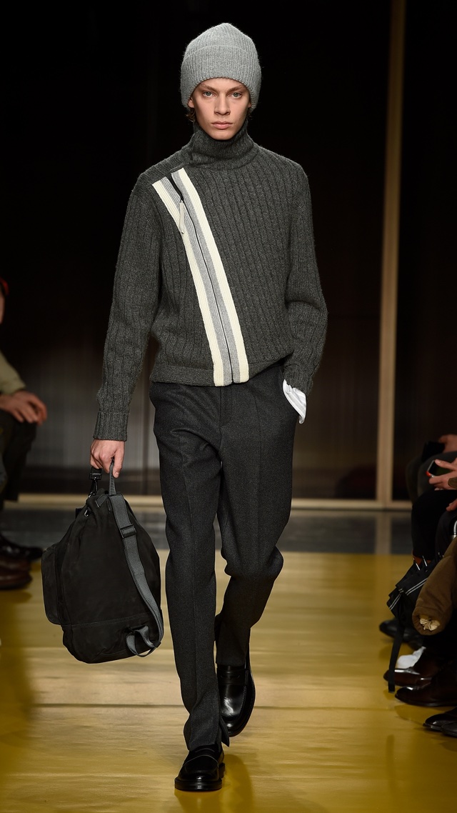 Logo de cara já nos impressiona a paleta de cores que investe pesado nos tons de marrom e cinza, deixando o marinho, tão comum em todas as coleções masculinas, em segundo plano. Amarelo, branco e “off-white” surgem em algumas peças e ganham imenso destaque em um panorama tão sóbrio e elegante.