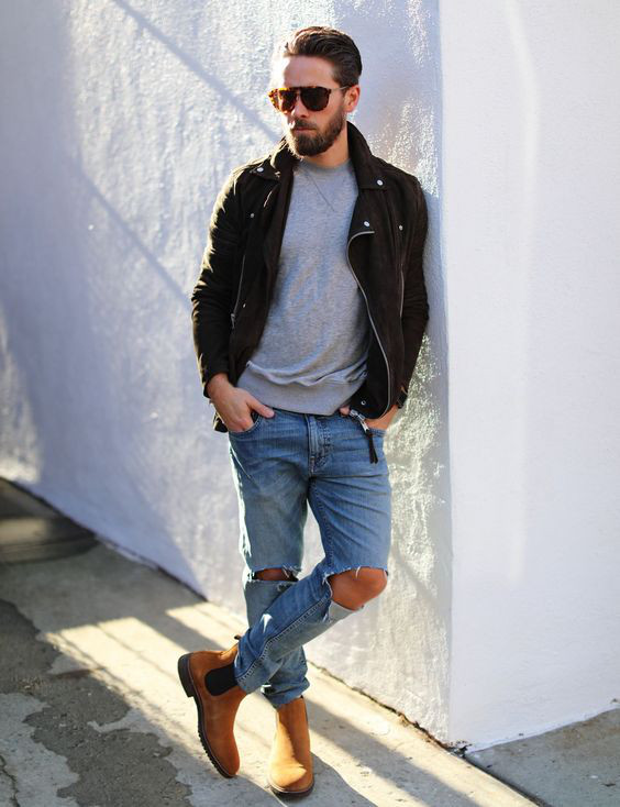 Como usar botas masculinas de couro em tons claros