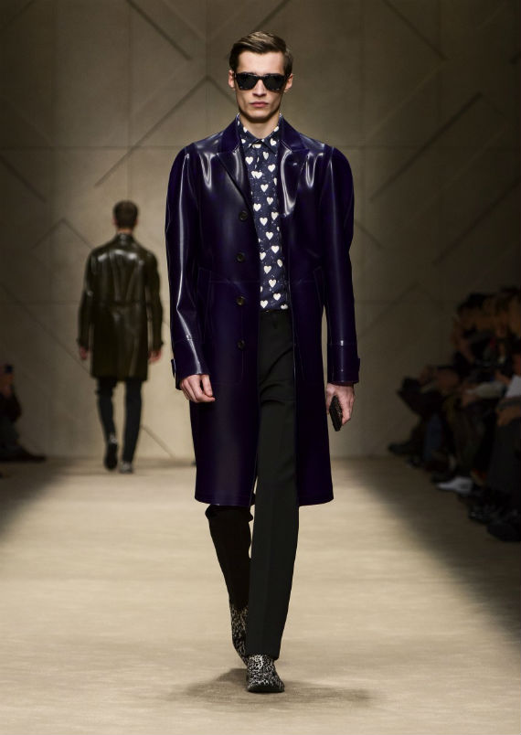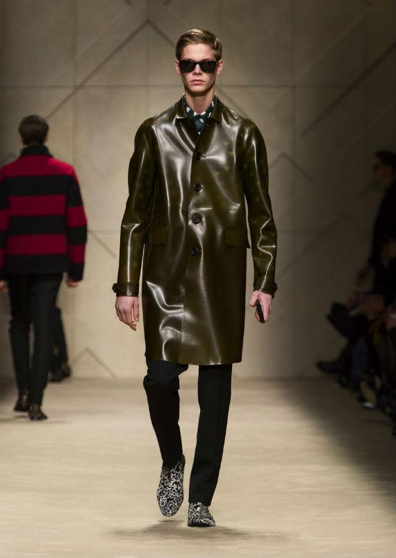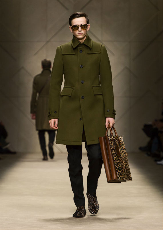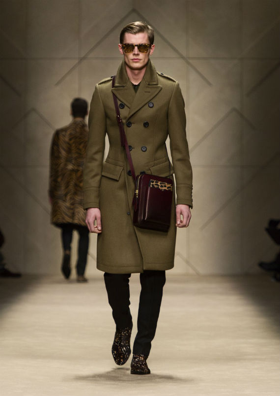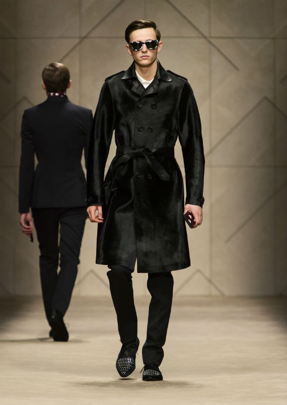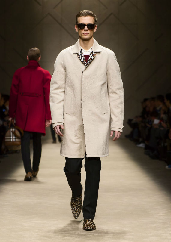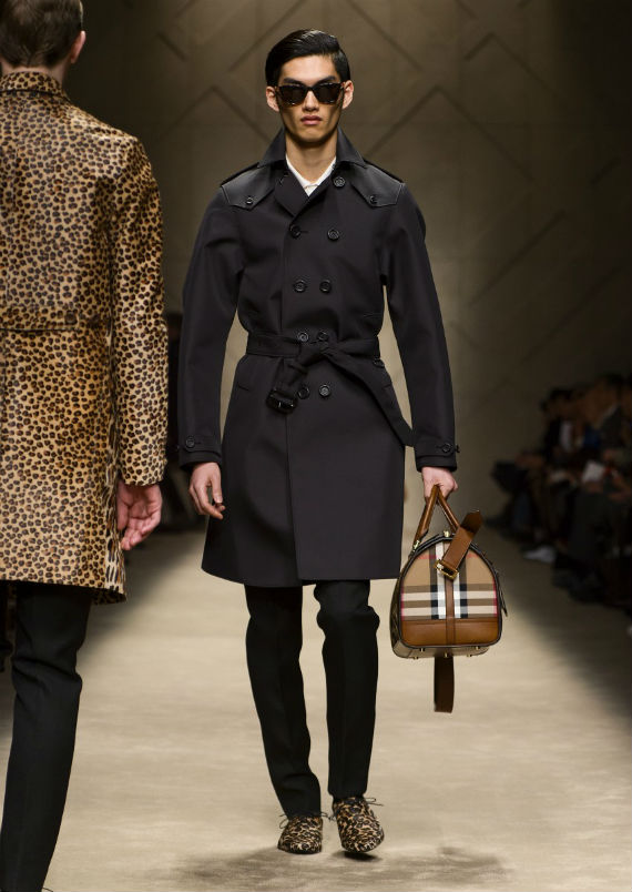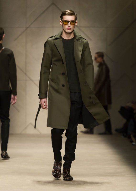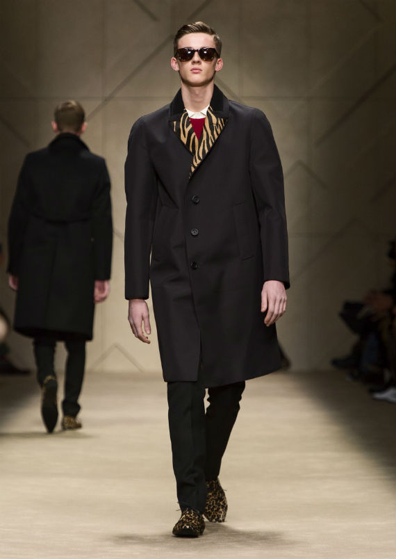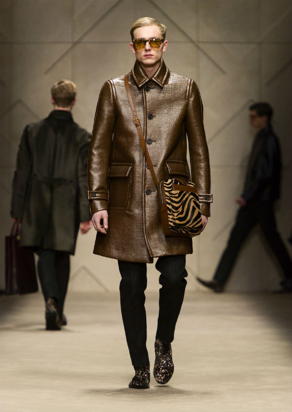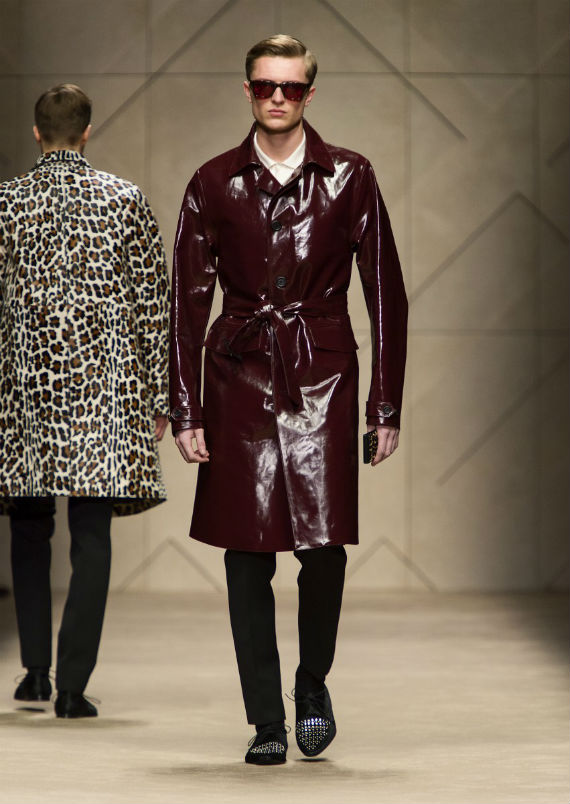 A Burberry, uma das mais prestigiadas grifes européias, desfilou recentemente seu outono/inverno 2013 com uma coleção de sua linha Prorsum masculina chamada Trench Kisses (um trocadilho com french kisses) onde mostrou – além de seus tradicionais e belíssimos trench coats – alfaiataria, peças casuais, malhas, jaquetas estilo militar e até casacos em animal print e tecidos sintéticos semitransparentes, algo que pode ter soado como novidade, mas que não me convenceu, pois tanto as estampas com padrão animal, quanto as transparências, estão no topo da minha lista de itens que deveriam ser banidos da moda. Mesmo assim o desfile merece ser conferido, afinal os acertos superam os erros e muito do que foi desfilado é de encher os olhos.
