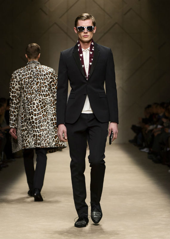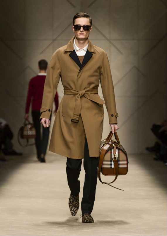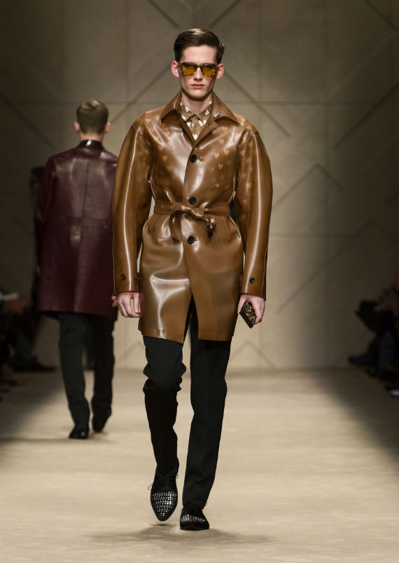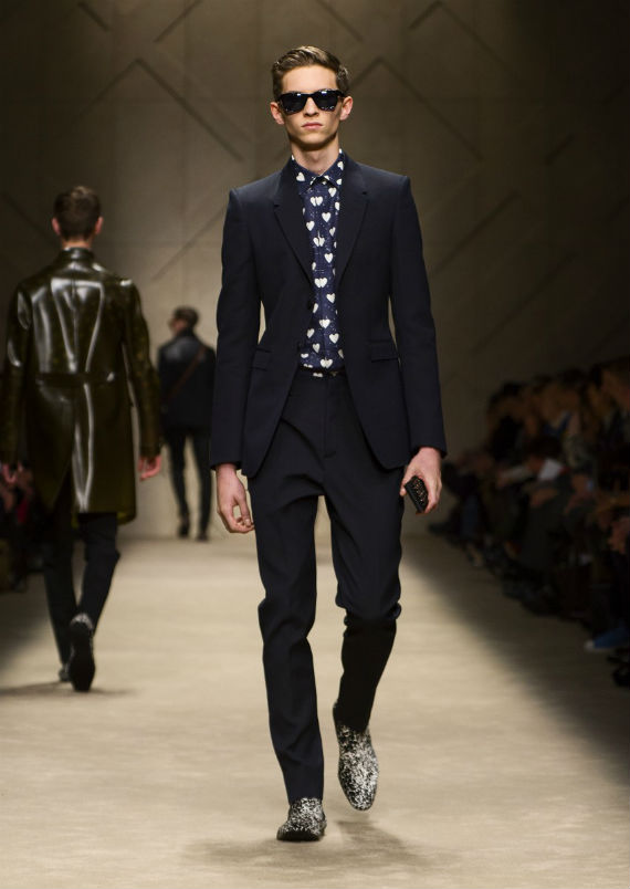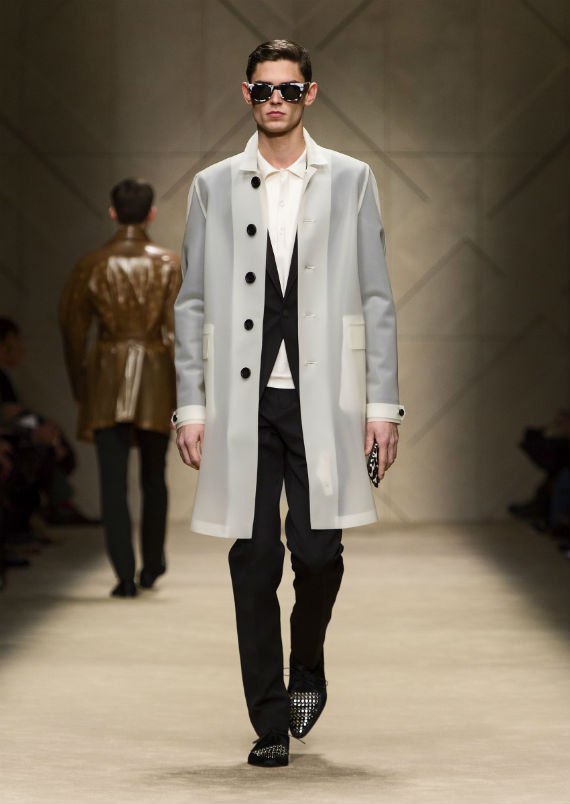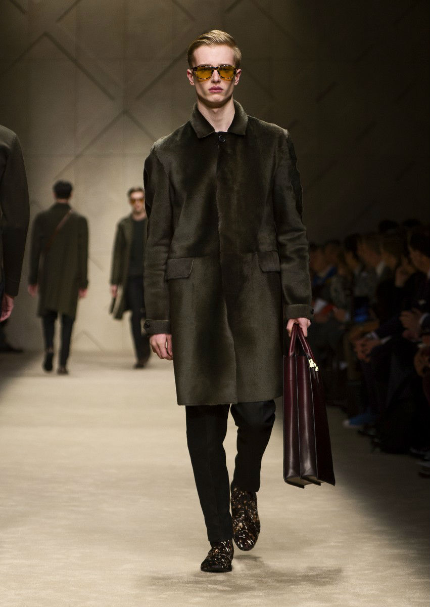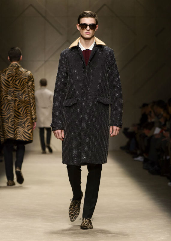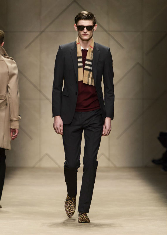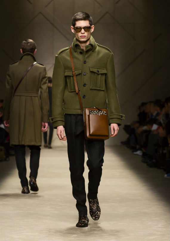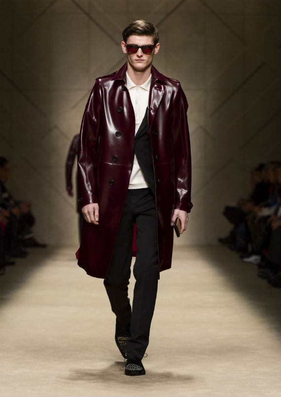 A Burberry, uma das mais prestigiadas grifes européias, desfilou recentemente seu outono/inverno 2013 com uma coleção de sua linha Prorsum masculina chamada Trench Kisses (um trocadilho com french kisses) onde mostrou – além de seus tradicionais e belíssimos trench coats – alfaiataria, peças casuais, malhas, jaquetas estilo militar e até casacos em animal print e tecidos sintéticos semitransparentes, algo que pode ter soado como novidade, mas que não me convenceu, pois tanto as estampas com padrão animal, quanto as transparências, estão no topo da minha lista de itens que deveriam ser banidos da moda. Mesmo assim o desfile merece ser conferido, afinal os acertos superam os erros e muito do que foi desfilado é de encher os olhos.