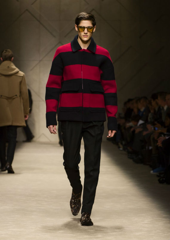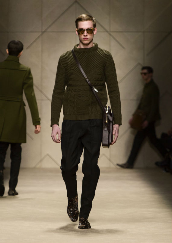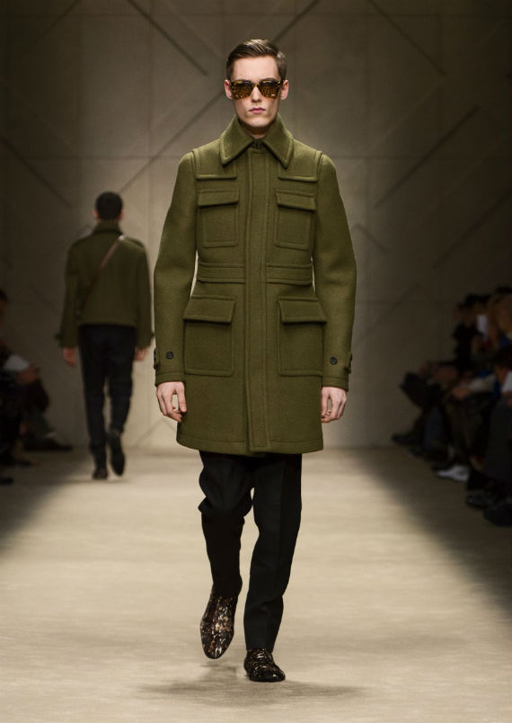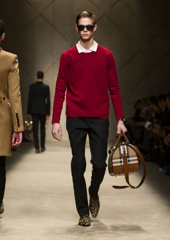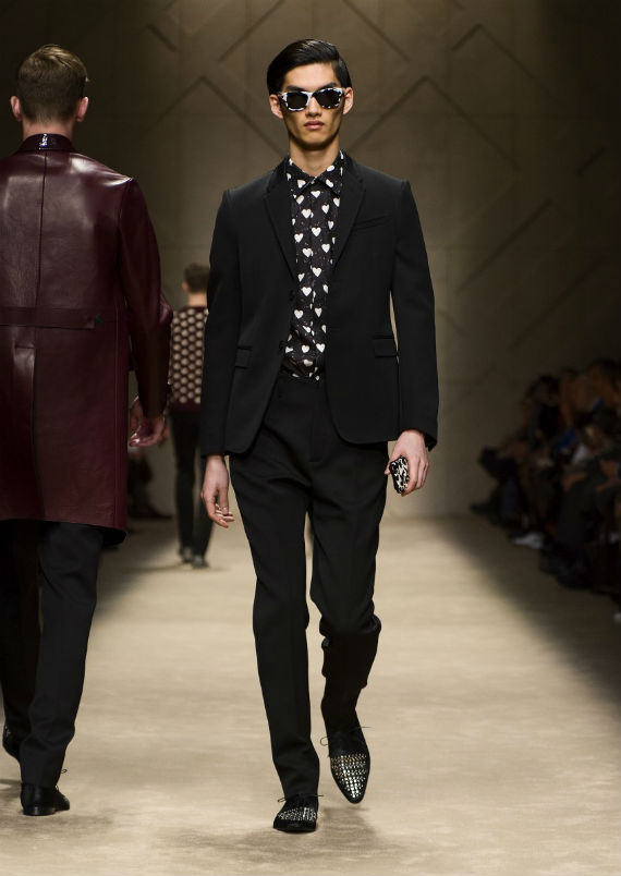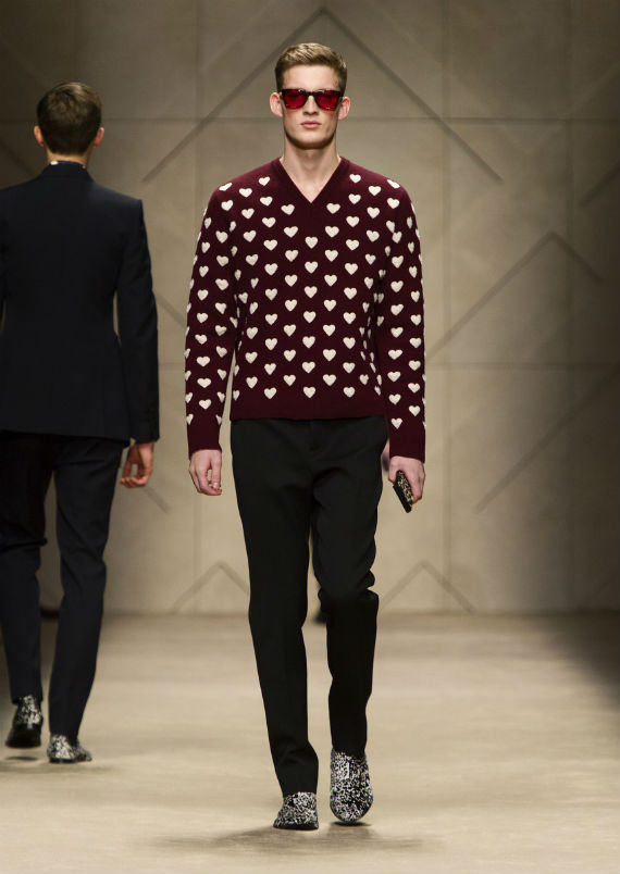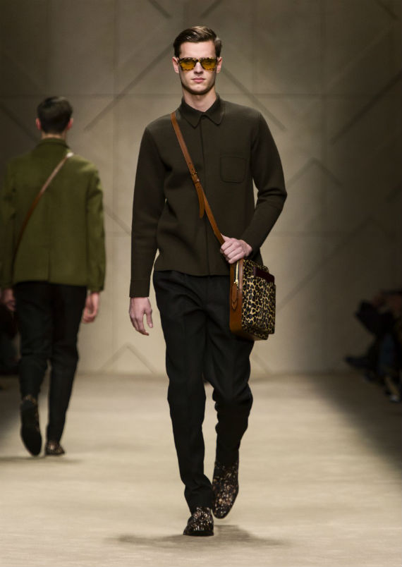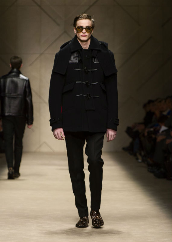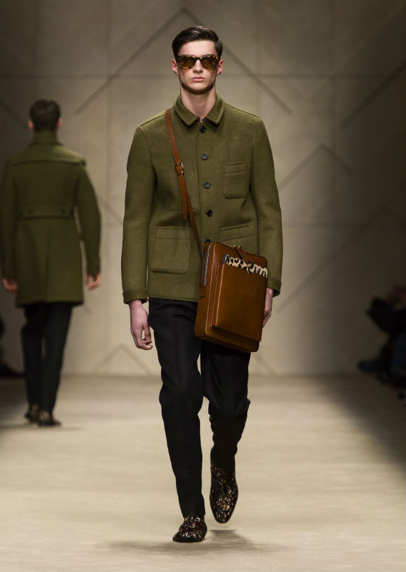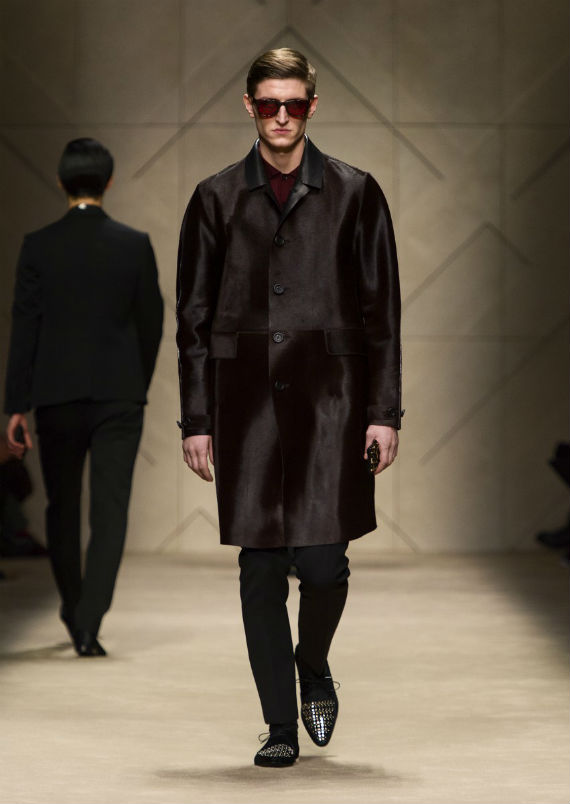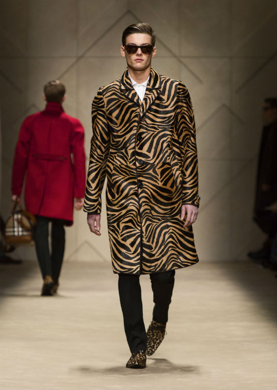 A Burberry, uma das mais prestigiadas grifes européias, desfilou recentemente seu outono/inverno 2013 com uma coleção de sua linha Prorsum masculina chamada Trench Kisses (um trocadilho com french kisses) onde mostrou – além de seus tradicionais e belíssimos trench coats – alfaiataria, peças casuais, malhas, jaquetas estilo militar e até casacos em animal print e tecidos sintéticos semitransparentes, algo que pode ter soado como novidade, mas que não me convenceu, pois tanto as estampas com padrão animal, quanto as transparências, estão no topo da minha lista de itens que deveriam ser banidos da moda. Mesmo assim o desfile merece ser conferido, afinal os acertos superam os erros e muito do que foi desfilado é de encher os olhos.