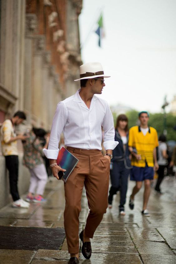 Com um visual diferente das calças tradicionais, mas ao mesmo tempo clássico e até meio retrô, ela tem se mostrado uma alternativa para sair das tendências mais manjadas da moda masculina atual – não que elas sejam ruins, mas sempre há quem tente fugir do lugar comum, não é?