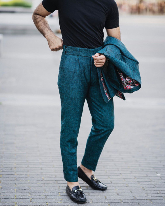 - Se for de linho algodão ou sarja aproximam a calça do modelo chino, então as combinações que você faz com suas chinos tem grande chance de funcionar com ela também;