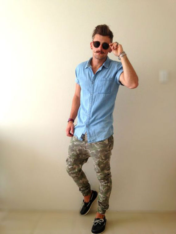 Como já dissemos trata-se de uma indumentária muito descontraída e pouco indicada para ambiente de trabalho ou alguma ocasião mais séria e formal, por outro lado é uma ótima escolha para passeios ao ar livre, uma volta no shopping ou uma ida a uma lanchonete ou barzinho, principalmente durante o dia.