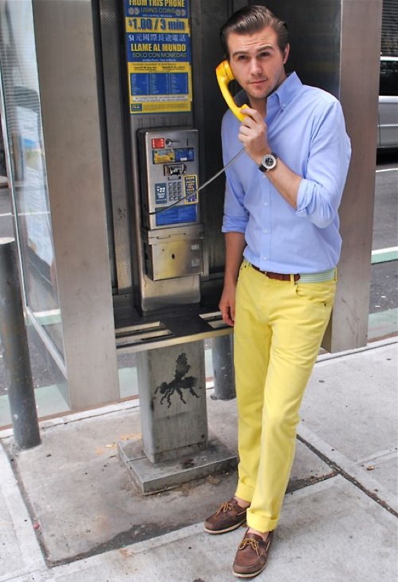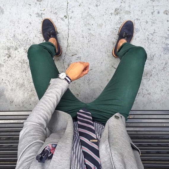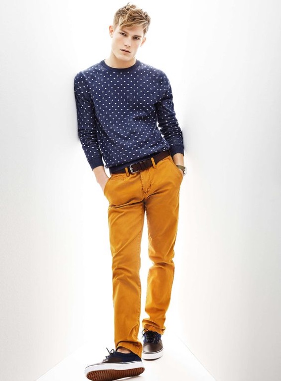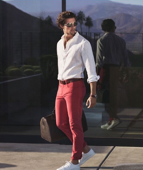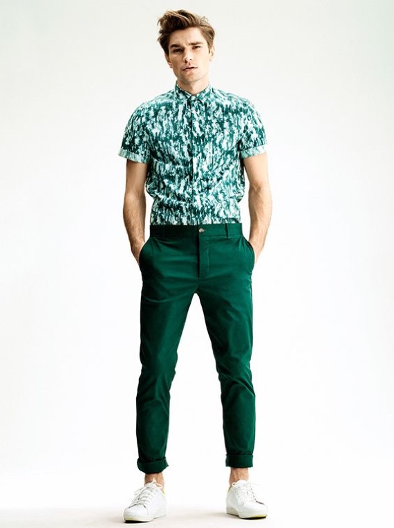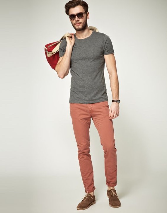 Não é necessária nenhuma estampa ousada, apenas uma cor bacana para mostrar originalidade e personalidade. Há uns 3 anos, quando as chinos color estavam em alta, isso parecia óbvio, mas com a onda dos tons neutros muita gente deixou de lado esse item e, de uns tempos para cá, ando sentindo que a onda do básico está limitando as opções de combinações masculinas.
