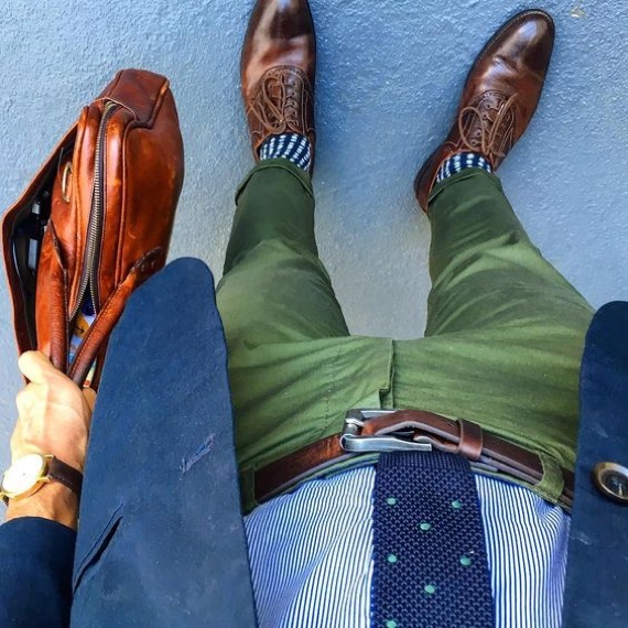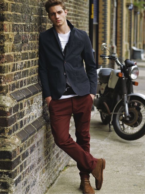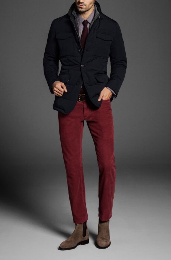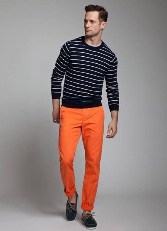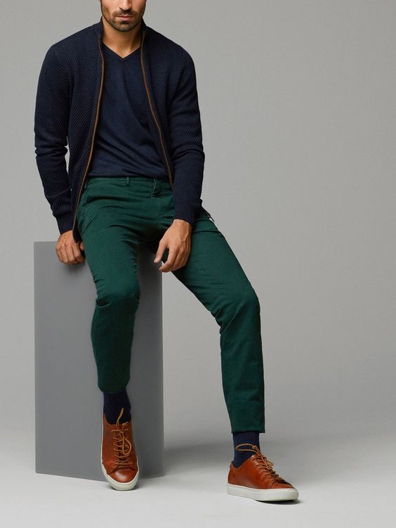 Dão um belo contraste com o marinho que pode estar presente em uma camisa, jaqueta ou blazer, também funcionam muito bem com peças de jeans, os tons mais fechados são uma boa escolha para o inverno e fazem bonito em ambientes um pouco mais sérios, as matizes vivas servem para o verão e meia estação e criam um look descontraído.
