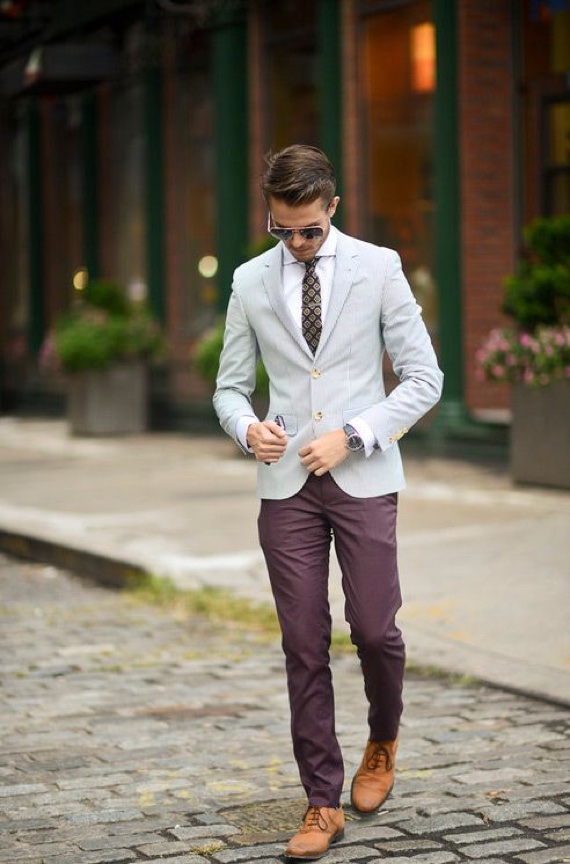 É uma cor classuda, mas diferente, qua deixa qualquer look mais interessante. No verão pode ser acompanhada de uma camisa ou camiseta branca básica, no inverno os tons de cinza deixam o conjunto ainda mais elegante.