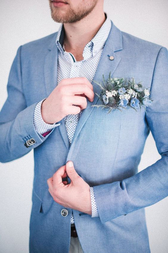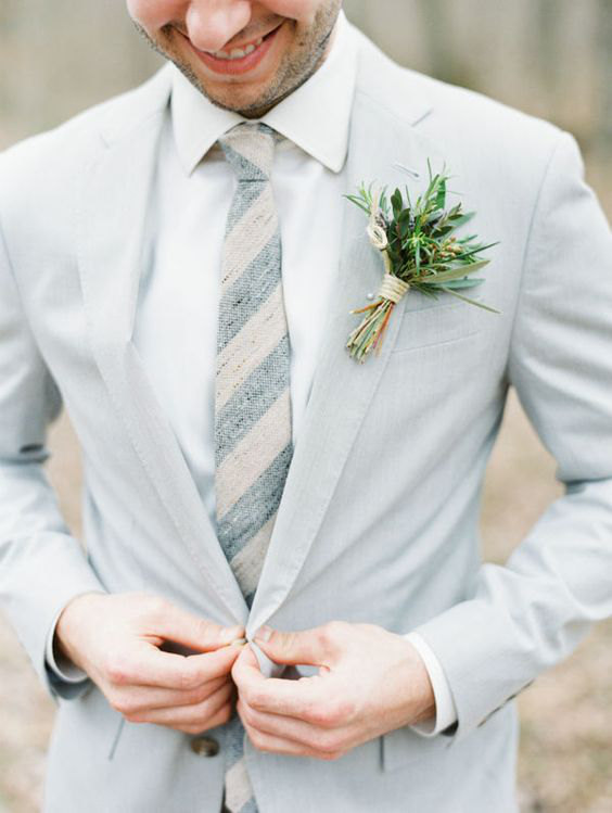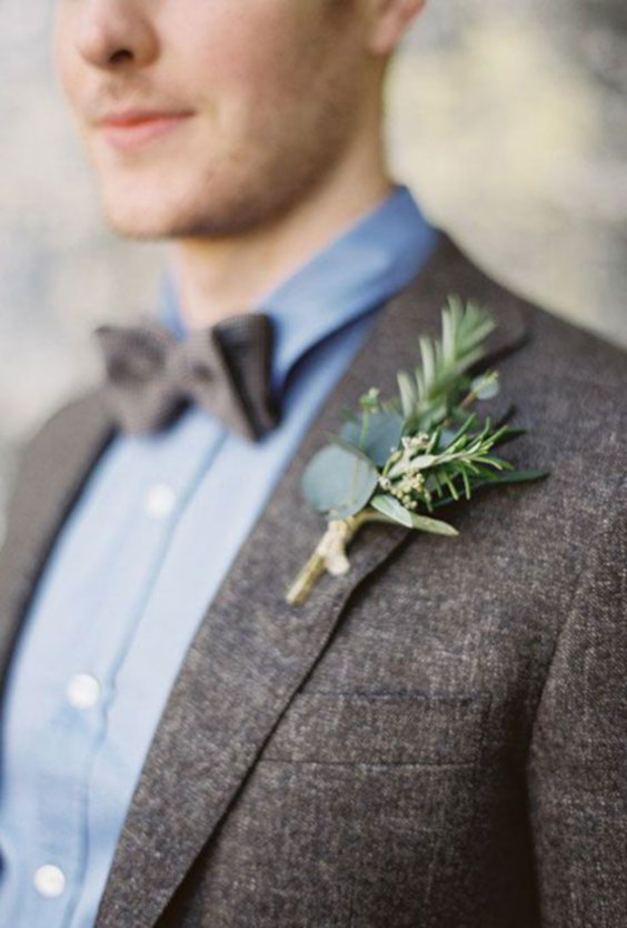 Para dar o toque especial, a boutonniere com uma flor ou um pequeno arranjo é o adendo ideal.