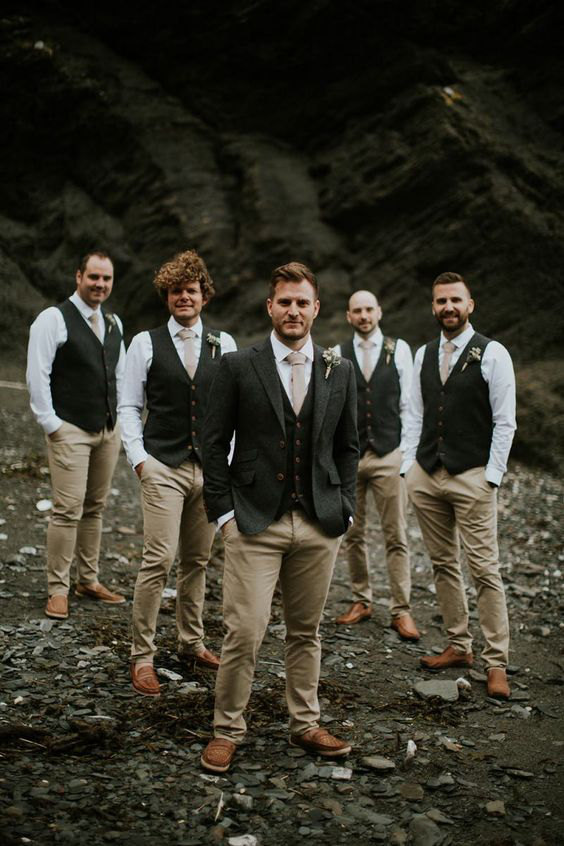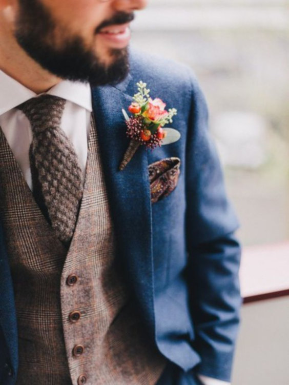 Muitos noivos optam por uma cerimônia super informal, nesse caso dá para trocar a calça de alfaiataria por um jeans discreto e adicionar tecidos ainda mais rústicos como o linho no verão e o tweed ou a lã espinha de peixe no inverno. Aliás, é bom lembrar, o evento diurno pode combinar com um chapéu bacana.