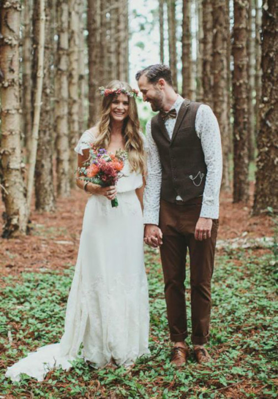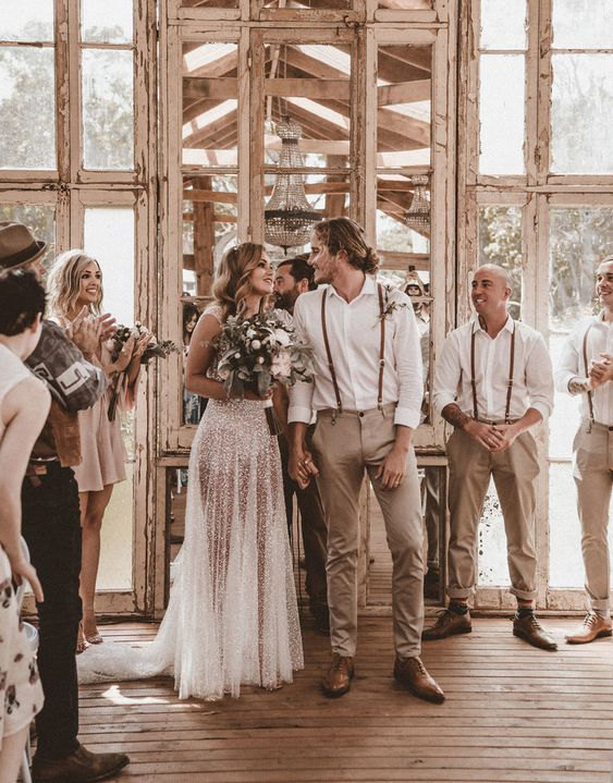 Estilo do noivo em um casamento boêmio