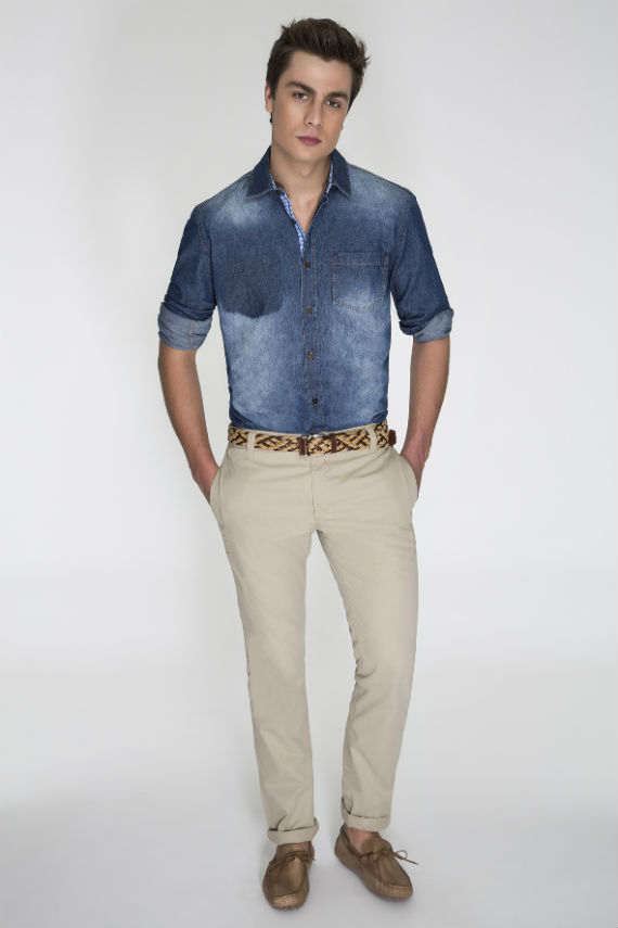 Ao invés de cores cítricas ou tons pastel, temos a exploração de toda uma palheta de azuis que vão do marinho ao azul celeste, as neutras como o bege e o castor aparecem em chinos e blazers, além do preto e branco fazendo contraste na combinação de um jeans com um cinto ou de uma calça em sarja com uma pólo.