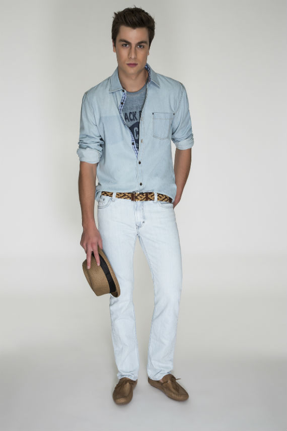 Quem gosta do verão para curtir a noite não se decepcionará com as opções de camisas em tons escuros e corte slim que vão muito bem com o dark denim de lavagem bacana e efeitos que valorizam a peça, rendendo um look simples, mas eficiente.