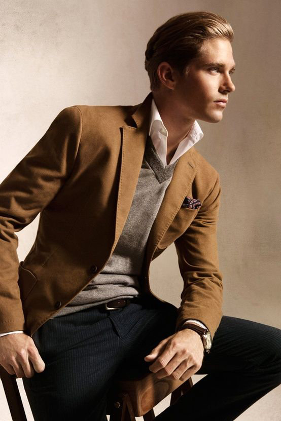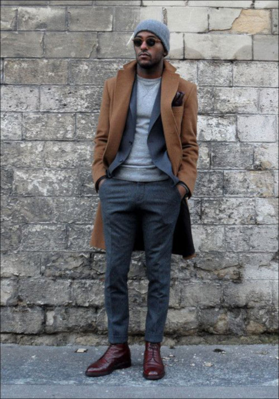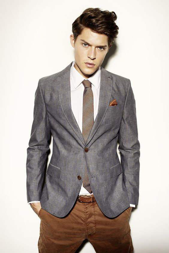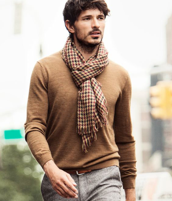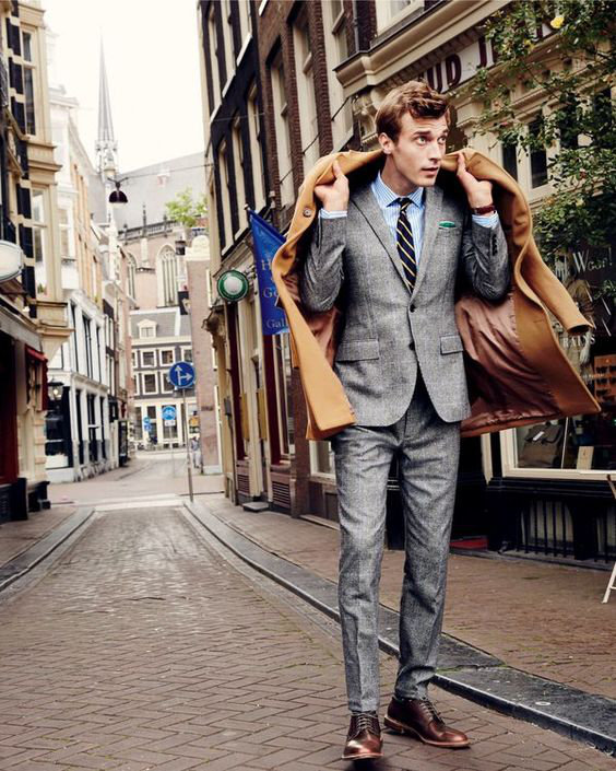 Você pode usar tom sobre tom de cinza no blazer, calça e camisa e apostar em acessórios caramelo, como: cachecóis, gravatas, chapéus, cintos ou até calçados como botas ou sapatos.