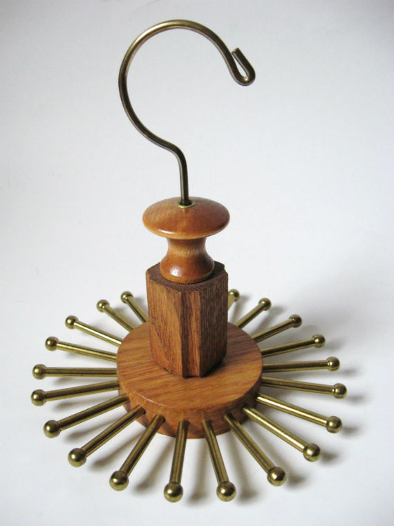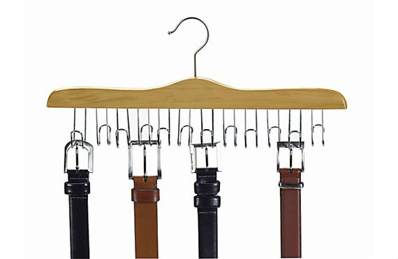 Existem muitos modelos por aí dedicados a gravatas e cintos, contudo a maioria deles se resume a uma porção de ganchos de aço, algumas vezes recobertos de espuma ou borracha para evitar que a peça escorregue. A vantagem de usar esse tipo de cabide é que você tem uma visualização muito rápida e fácil dos seus acessórios.