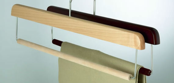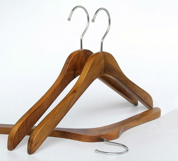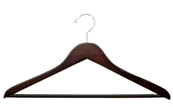 – Madeira de baixa qualidade: dura pouco e pode deixar farpas na sua roupa, além do visual de gosto duvidoso. Raramente você vai encontrar um cabide estruturado para ternos nesse material.