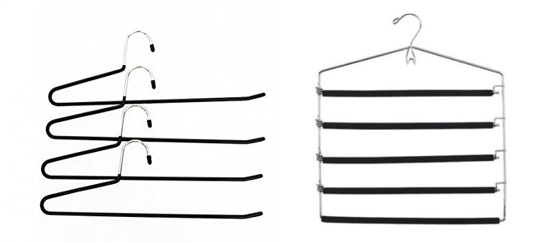 Possuem a haste horizontal que permite que as calças sejam penduradas. Podem ser de madeira e possuir um revestimento ou um elástico que evita que a peça caia ou podem ser de aço, com várias hastes a fim de economizar espaço no guarda roupas, estes últimos são mais indicados para guardar calças casuais, enquanto o primeiro é ideal para alfaiataria.