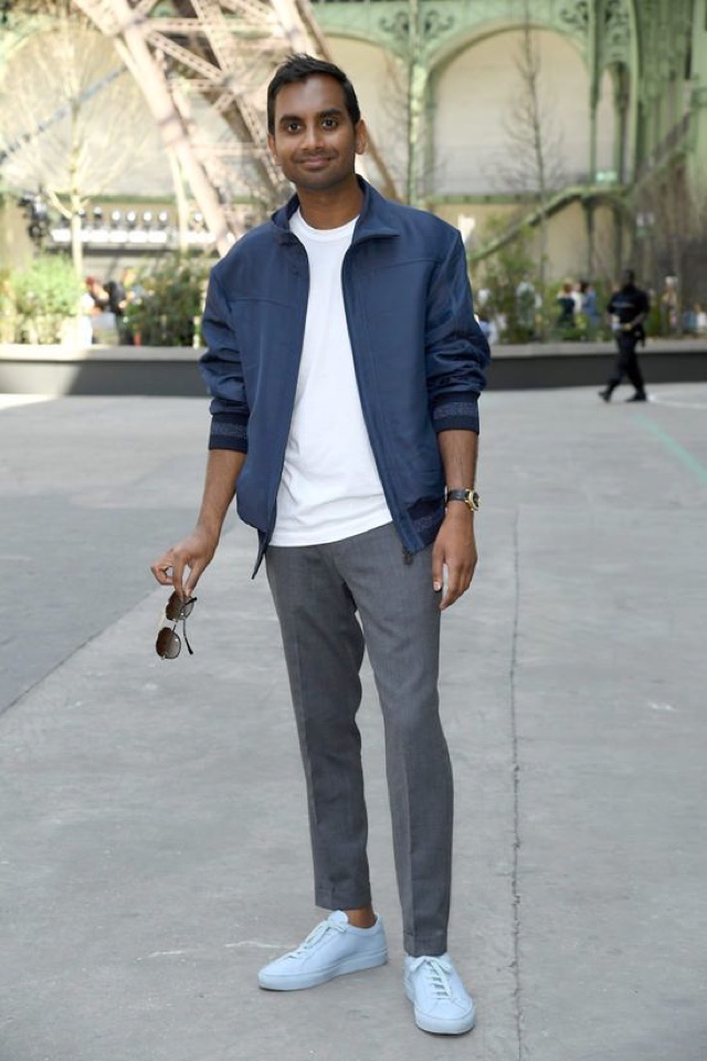 Tênis brancos são companheiros constantes, a simplicidade do calçado cai com uma luva em um look com pouca informação.