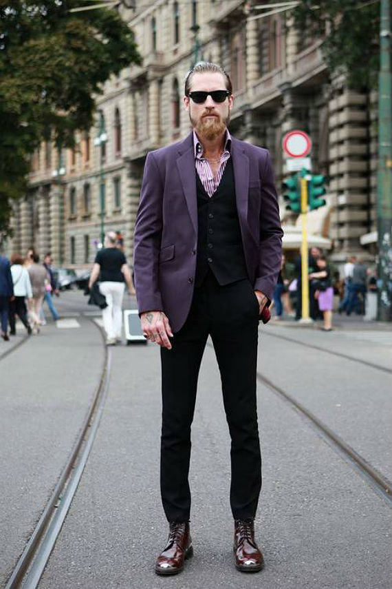 Obs: Na foto acima e no destaque você vê o fotógrafo Justin O’Shea, conhecido no meio da moda por seu estilo marcante. Ele sempre usa a barba neste comprimento, ternos com caimento slim, raramente abre mão de colete, sapatos pesados e óculos escuros, mas mesmo quando está apenas de camiseta e jeans ainda é inconfundível.