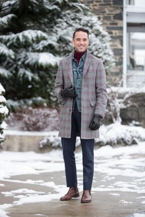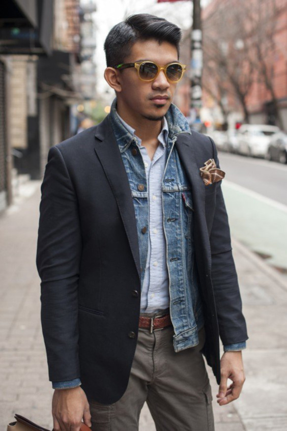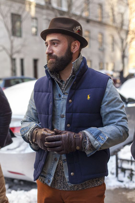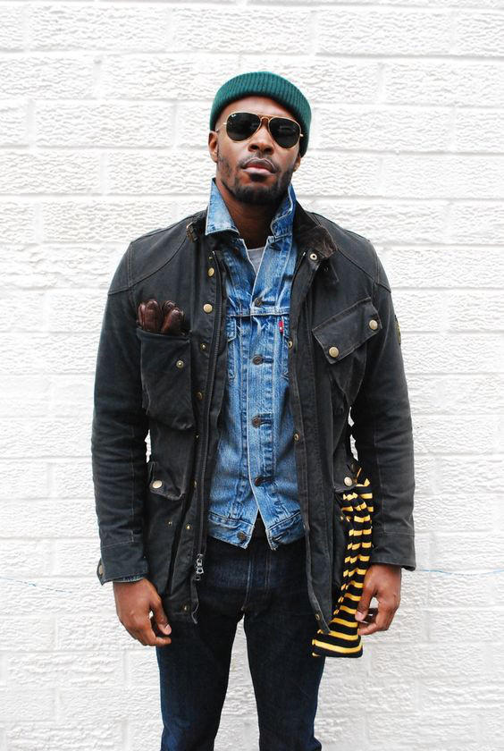 Além de criar uma camada intermediária entre um item mais pesado, como um casaco ou parka, a jaqueta ainda empresta seu estilo e a textura do jeans para deixar o look mais rústico e descolado, o tipo de solução visual que gera curiosidade e admiração — lembre-se do que eu disse a respeito de convenções. ; )