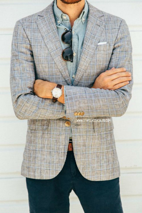 O chambray pode ser composto por algodão ou então por linho, esta última opção soa totalmente casual e se comporta como qualquer peça de linho puro, com seu estilo informal e seus amassados. Neste caso o melhor é entrar na vibe e fazer um combo despojado, ideal para férias ou um passeio diurno em locais abertos.