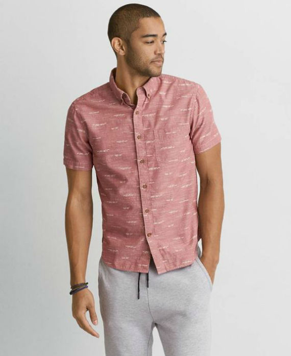 Manga curta pode? Pode sim, principalmente se contar com micro estampas para dar mais charme. Pode ser usada com um jeans, uma calça chino ou aquela bermuda que você não dispensa. Aproveite o visual despojado para inserir alguns acessórios como pulseiras e um relógio com toque esportivo.