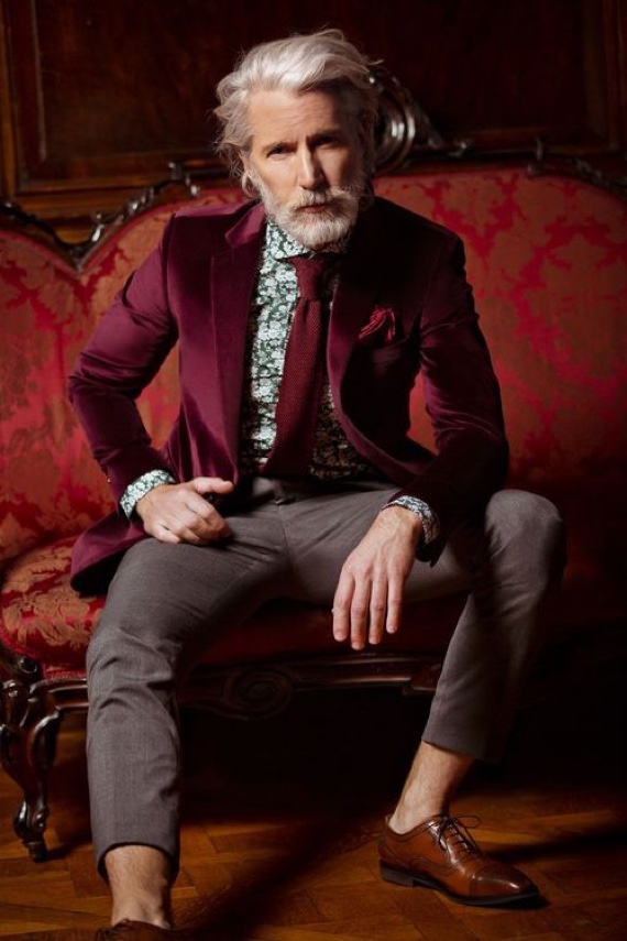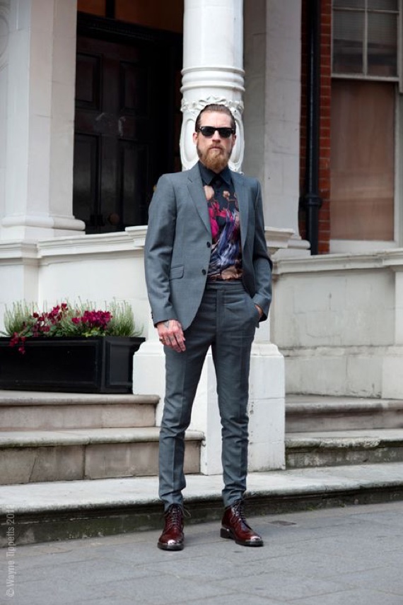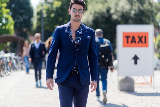 5 – Ternos e blazers marinho e de diversos tons de cinza são os melhores para combinar, pois são neutros, já o preto pode ser muito austero para esse tipo de estampa, mas vale a tentativa, como você pode ver na foto acima;