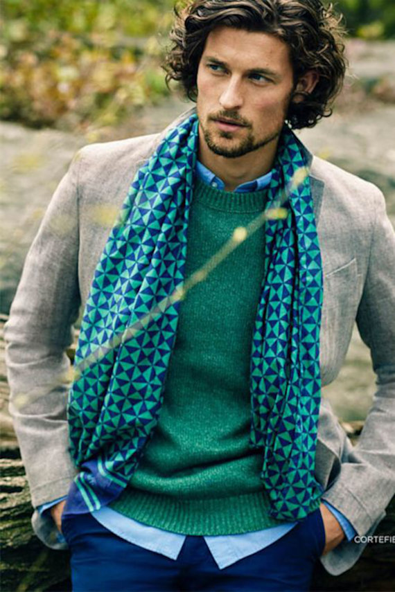 As combinações de marinho e marrom, que nós tanto destacamos aqui no Canal Masculino, também valem para o look com cachecol, aliás a peça é ótima para quebrar o monocromático sem fatiar a silhueta, pois é usada no topo do dorso.
