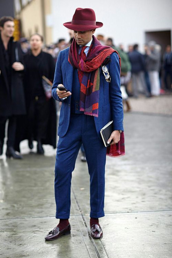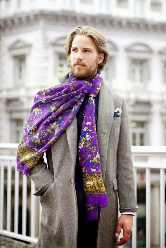 O cachecol masculino não precisa ser sempre sério e de cores escuras ou neutras, você pode usá-lo como seu “fashion statment” dando um toque moderno ao traje e deixando-o mais moderno e descolado.