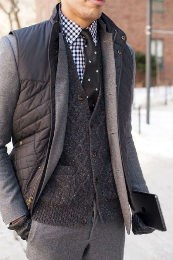 Nos não vivemos dizendo que a grande sacada do inverno é poder aproveitar para fazer sobreposições com as mais diversas peças da moda masculina? Pois bem, o colete entra aqui como mais uma opção, abuse da peça quando for lançar mão desse recurso, usando os gilets menos volumosos por baixo de um casaco ou jaqueta e os mais volumosos por cima.