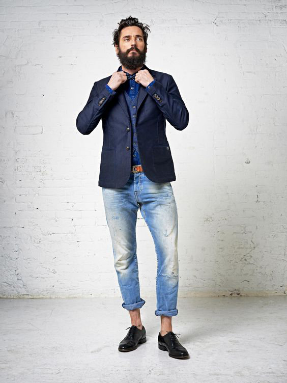 Mas a incerteza dos homens a esse respeito tem fundamento: a combinação errada entre sapatos, denim e camisa ou camiseta pode ficar bem esquisita e até inapropriada para certas ocasiões.