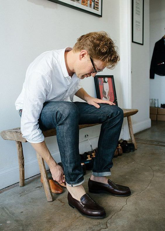Uma dica para quem quer inserir um sapato em um combo co jeans é escolher um modelo de camurça ou nubuck, o couro rústico pede algo bem casual.