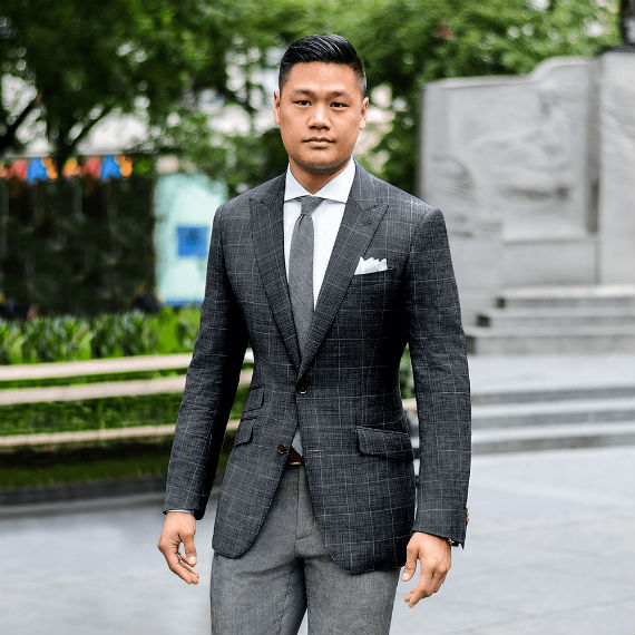 Dúvida com cores? Se o terno é neutro e o window pane é colorido, como no exemplo acima, combine a camisa e a gravata fazendo tom sobre tom baseado na cor do padrão. Fica elegante e harmonioso.