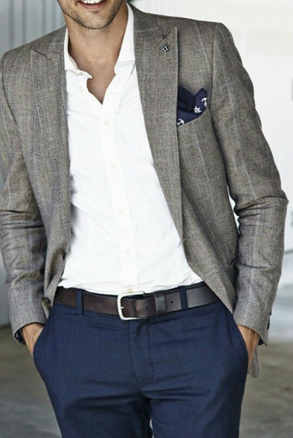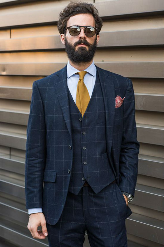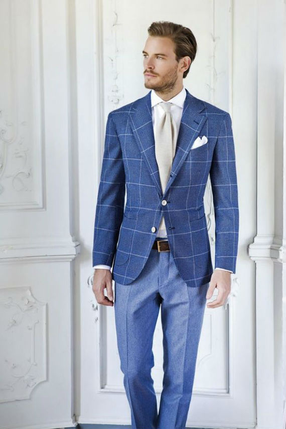 Muita gente me pergunta sobre alternativas ao terno tradicional para o noivo, eis uma boa escolha, o costume window pane em um tom sobre tom de marinho (grafite também vai bem). Escolha uma gravata clara (cinza ou prata) e não deixe de fora o lenço no bolso.